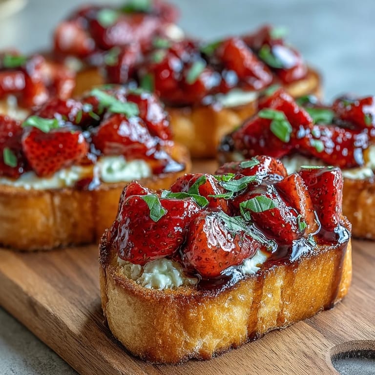 To ensure the bread remains crisp, toast it just before serving and let it cool slightly to avoid sogginess from the toppings. Using fresh, ripe strawberries enhances the natural sweetness and juiciness, while gently tossing them allows the flavors to meld without bruising. When simmering the balsamic glaze, watch closely to achieve a lovely syrupy consistency without burning.