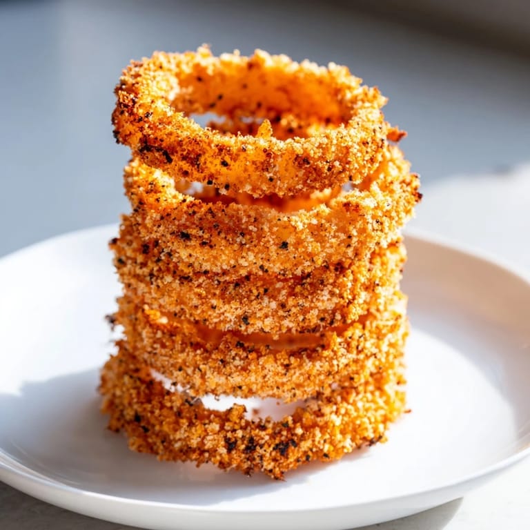 Save to Pinterest The first time I stacked onion rings into a tower at a dinner party, my friend gasped like I'd just pulled off a magic trick. Turns out, there's something about watching golden rings lean against each other that transforms a simple appetizer into theater. That night, I learned that the secret isn't complicated—it's about getting the batter exactly right, the oil hot enough, and knowing when to stop frying and start stacking.
