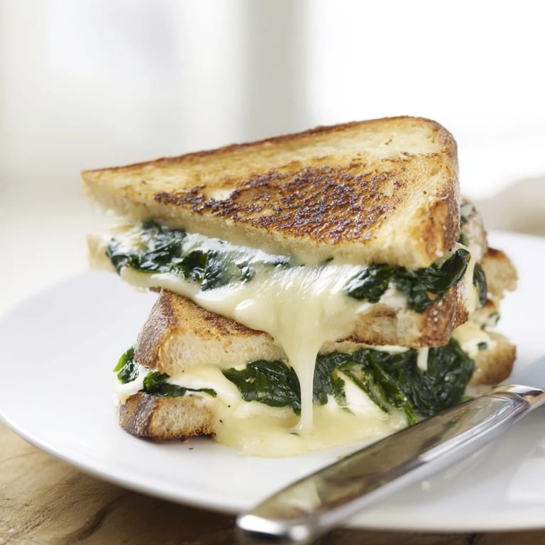 Save to Pinterest Rainy afternoons were made for this kind of cooking. I'd been experimenting with ways to upgrade my standard grilled cheese, and the day I crumbled some leftover feta into a skillet with spinach, something clicked. The salty tang cutting through rich melted cheese felt like discovering a secret combination. Now it's the sandwich I make when I want something comforting but a little more special than the usual.