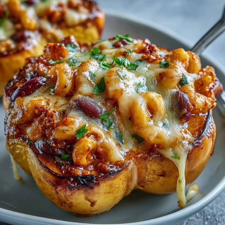 Save to Pinterest There's something magical about the moment when you realize a dish doesn't need to be complicated to feel special. I stumbled onto this combination on a chilly evening when I had roasted squash halves cooling on the counter and a pot of chili mac simmering on the stove, and instead of serving them separately, I thought: why not let them become one? That first spoonful, with creamy pasta cradled in sweet roasted squash and finished with a drizzle of hot honey, changed how I think about weeknight cooking.