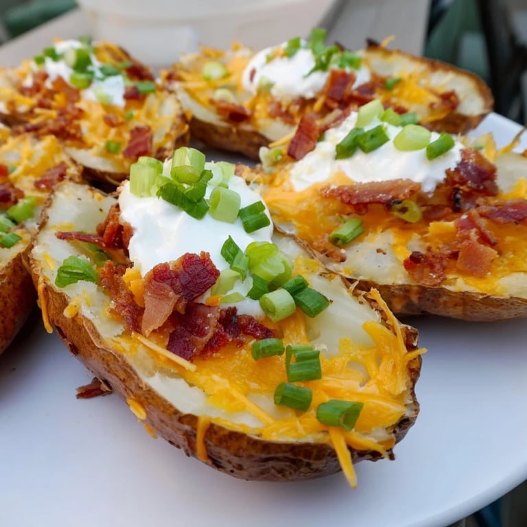Save to Pinterest My friend Sarah showed up to a game night with a platter of these loaded potato skins, and I watched them disappear in minutes—literally faster than she could refill the plate. There's something about that crispy exterior giving way to melted cheese and bacon that makes people lose all composure at a table. I asked for her secret, and she just laughed and said it was less about technique and more about not overthinking it. That stuck with me, and now whenever I make them, I remember that sometimes the best food is the stuff that doesn't try too hard.