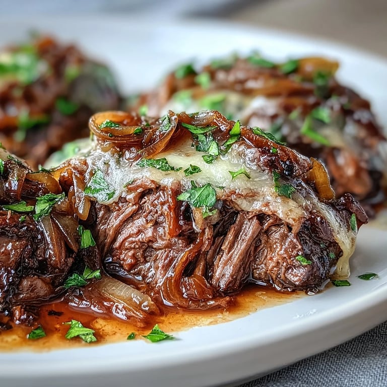 Save to Pinterest My neighbor dropped off a slow cooker one rainy Tuesday with a scribbled note that said, "Try this." I had a chuck roast thawing and a bottle of red wine I'd been saving for no particular reason. The house smelled like a bistro by dinner, and I realized I'd been overcomplicating weeknight meals for years. That roast, draped in sweet onions and topped with bubbly Gruyere, taught me that patience and a good sear can turn ordinary ingredients into something worth gathering around.
