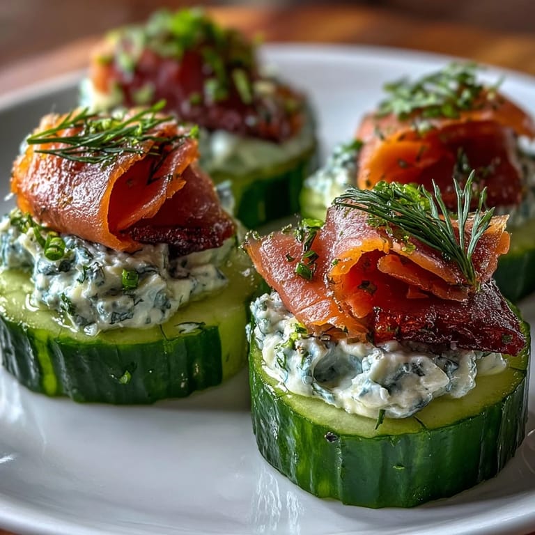 I once made a double batch for an early spring picnic, thinking there'd surely be leftovers. Instead, people hovered around the platter, carefully balancing their plates as cucumber rounds disappeared faster than I'd imagined. My cousin confessed she'd never liked smoked salmon until these – now she requests them every family get-together. Something about the bright green and coral colors made that afternoon feel special, even on slightly damp grass. I've since learned to bring extra napkins and make more than I think I'll need.