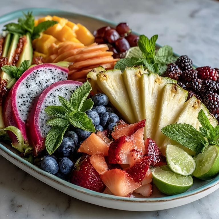 Save to Pinterest My neighbor knocked on the kitchen door mid-afternoon with a puzzled expression, asking if I could help her transform a farmers market haul into something impressive for an impromptu dinner party. Two hours later, watching her face light up as guests crowded around a tiered platter bursting with jewel-toned fruit felt like the real reward. This tropical display became my go-to move whenever I need something that looks restaurant-worthy but requires zero cooking skills. It's become less about following a recipe and more about understanding how color, texture, and arrangement can turn simple fruit into an edible work of art. Now friends request it constantly, and I've learned that sometimes the most memorable dishes are the ones that celebrate ingredients without fussing with them.