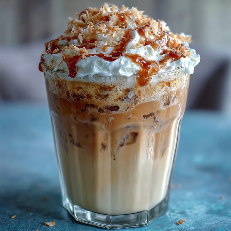 Save to Pinterest Experience the perfect summer refreshment with this Iced Vanilla Bean Frappuccino topped with luscious toasted coconut foam. Combining the rich flavors of real vanilla bean and strong brewed coffee, this creamy beverage is blended with ice for a frosty delight. The crowning touch—an airy, toasted coconut milk foam—adds a tropical twist that makes every sip irresistible and perfect for warm days.